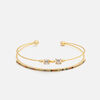اسوره نسائية بتصميم كلاسيك بشكل اسورتين متصلة معا باللون الفضي بشكل مفرغ من المنتصف وتتزين بحلية مفرغة مرصعة بفصوص الزركون اللامعة ، اسواره بنهاية مفتوحة لتتمكني من التحكم بمقاسها على يديك ، نسقي الإسواره النسائيه مع إطلالتك المسائيه لطله أنيقه .