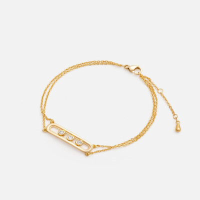 اسوارة نسائية بتصميم أنيق ، سوار باللون الذهبي بتصميم حلية بشكل مفرغ وتتزين بعدد من فصوص الزركون للامع ، اسوارة أنيقة تناسب إطلالتك اليومية .
