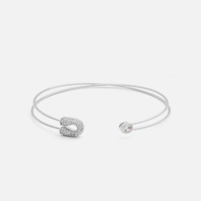 اسوره نسائية بتصميم ناعم وعصري باللون الفضي بشكل اسورتين متصله ومفرغه من المنتصف ومرصعه بفصوص من الزركون البراق و تتزين بحلي في نهايتها، اسواره بنهايه مفتوحه لتتمكني من التحكم بمقاسها على يديك ، نسقي الإسواره النسائيه مع إطلالتك المسائيه لطله أنيقه .