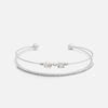 اسوره نسائية بتصميم متفرد بشكل ثلاث اساور متصلة معا باللون الفضي وتتزين بأحجار الزركون، اسواره بنهاية مفتوحة لتتمكني من التحكم بمقاسها على يديك ، نسقي الإسواره النسائيه مع إطلالتك المسائيه لطله أنيقه .
