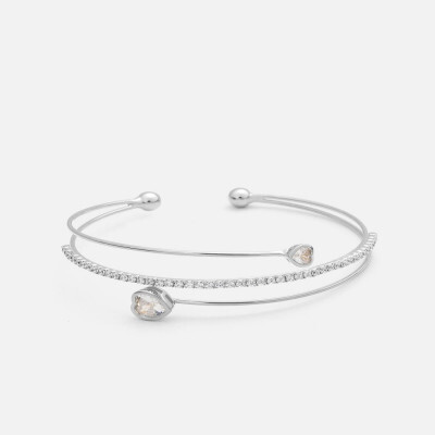 اسوره نسائية بتصميم مميز بشكل اسورتين متصلة معا باللون الفضي وتتزين اسواره بفصوص الزركون اللامعة والاساور الأخرى تتزين بحلي بشكل دائري مرصع بحجر زركون براق ، اسواره بنهاية مفتوحة لتتمكني من التحكم بمقاسها على يديك ، نسقي الإسواره النسائيه مع إطلالتك المسائيه لطله أنيقه .