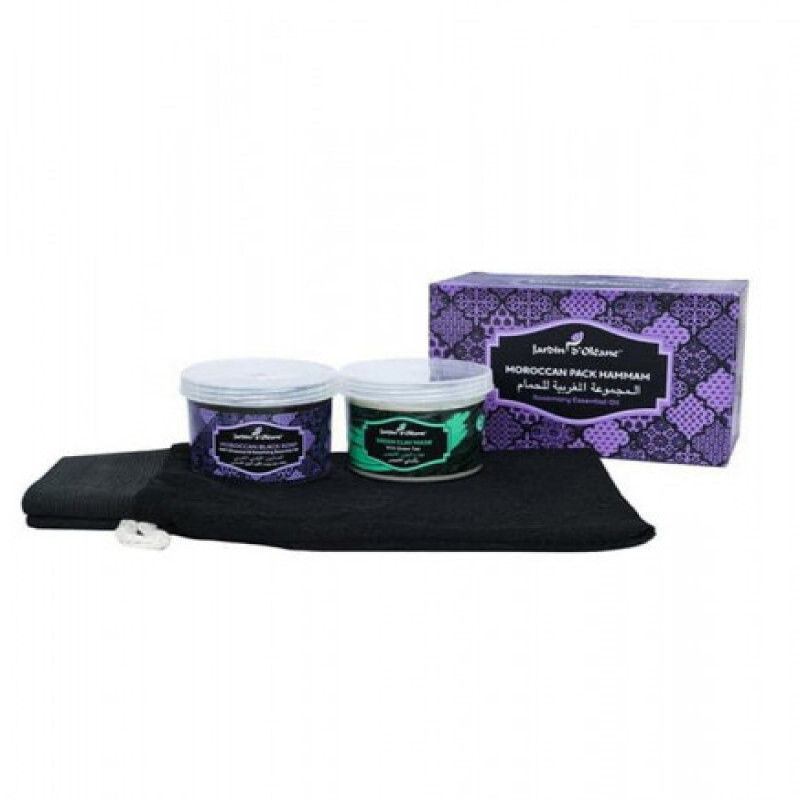 المجموعة المغربية للحمام بزيت اكليل الجبل الاساسي وقناع الطين الأخضر من جاردن دي اوليان :