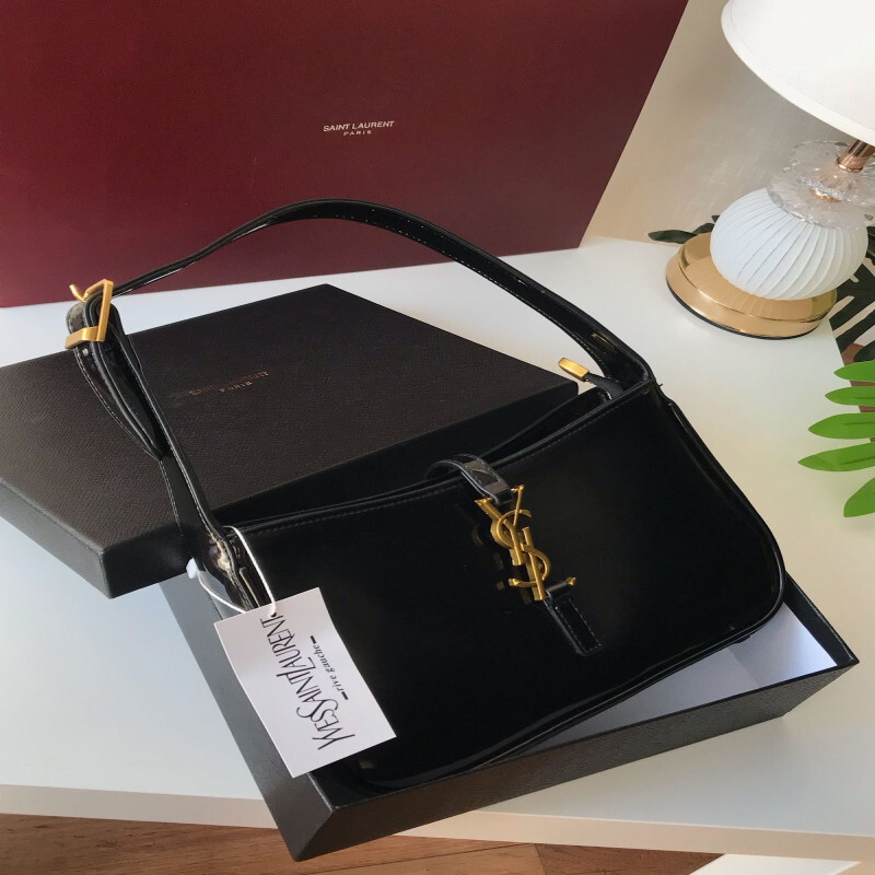 شنطة سان لوران YSL طبق الأصل باللون الاسود اللامع بتصميم فاخر وأنيق، مثالية لكل من تبحث عن لمسة أنوثة فخمة في إطلالتها. مصنوعة من جلد لامع بجودة عالية، مع شعار YSL الذهبي البارز ولمسات تصميم راقية تناسب المناسبات والخروجات.