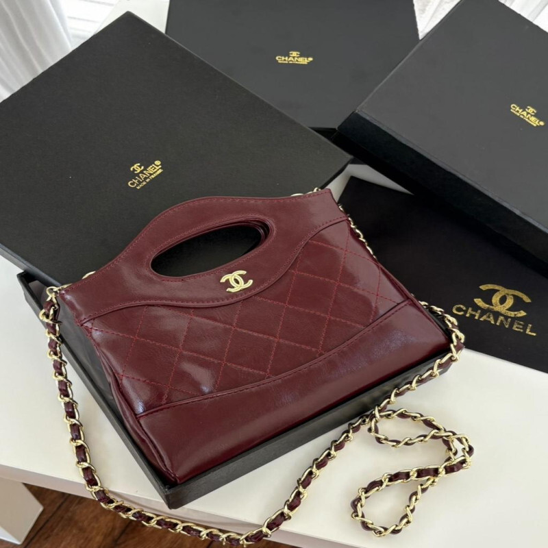 شنطة شانيل CHANEL جلد فاخرة – عنابي × ذهبي (حجم صغير)