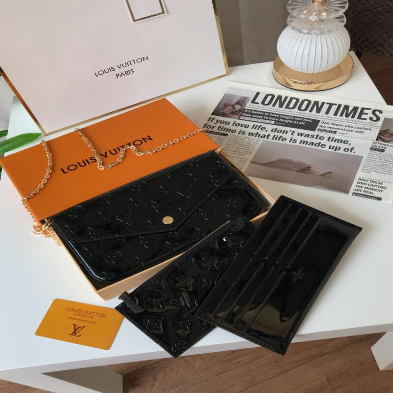شنطة لويس فيتون Louis Vuitton – صغيرة (لون اسود لامع × ذهبي)