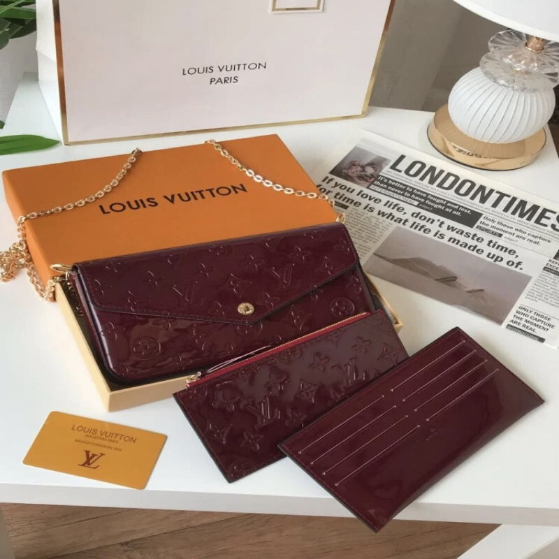 شنطة لويس فيتون Louis Vuitton – صغيرة (لون عنابي غامق لامع × ذهبي)