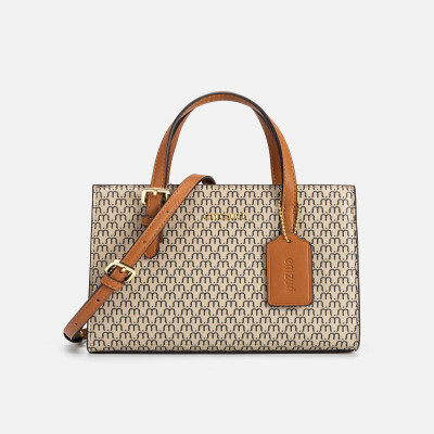 شنطة نسائيه بتصميم أنيق من ماركة ايمزوري ، شنطة من الجلد المنقوش بشعار الماركة باللون البيج و البني، صممت الشنطة بيد مقوسه لسهولة حملها ولتعزيز الطابع الكلاسيك فيها ، مرفق مع الشنطة حزام قابل للازاله لتتحكمي بطريقة ارتداء الشنطة بما يناسب اطلالتك ، شنطة أنيقة تناسب كل الأوقات بمقاس الطول= 20.5 سم – العرض= 9 سم – الارتفاع= 16 سم .