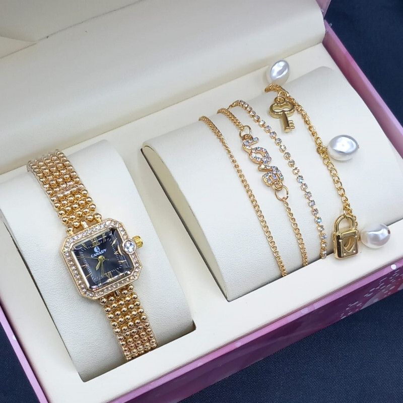طقم إكسسوار نسائي ساعة مع أساور أنيقة