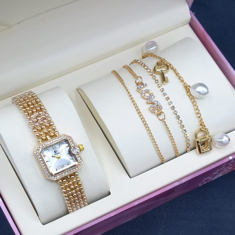 طقم إكسسوار نسائي ساعة مع أساور أنيقة
