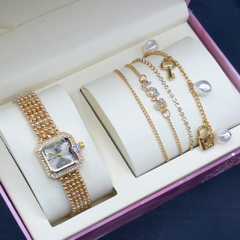 طقم إكسسوار نسائي ساعة مع أساور أنيقة