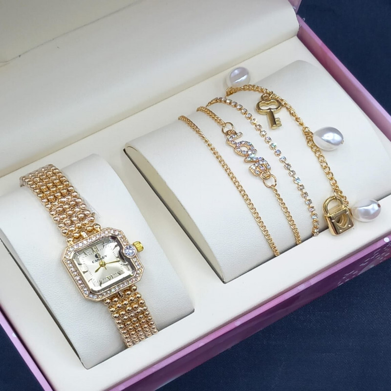 طقم إكسسوار نسائي ساعة مع أساور أنيقة
