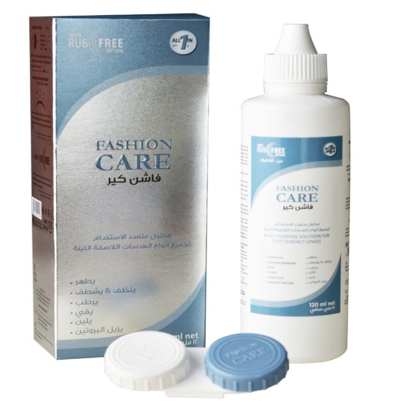 محلول فاشن كير محلول طبي متعدد الأغراض للعدسات، فاشن كير محلول مائي يحتوي على مزيج من العناصر المتجانسة، التي تعمل على تعقيم وتنظيف العدسات وإزالة ترسبات البروتين، مما يساعد على التخلص من الجراثيم، وإبقاء العدسات رطبة طوال اليوم، لراحة أكثر للعينين.