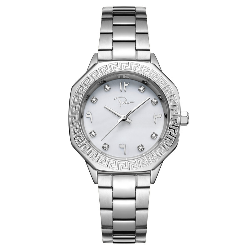 ساعة نسائية من ماركة فليب مارسيه ، ساعه بسوار من الستانلس ستيل باللون الفضي ، صممت هذه الساعه بكل تفرد لإطلاله ملفته ، ساعه أنيقه تجمع بين الكلاسيكيه بطابع عصري ، تتميز الساعة بالميناء الواسع باللون الأبيض المحدد بإطار معدني يبرز جمال الساعة وبأرقام عربيه ، يمكنك تنسيق الساعة مع إطلاله وحذاء أنيق لسهره او أمسيه مسائيه فتبرز من أناقه طلتك .